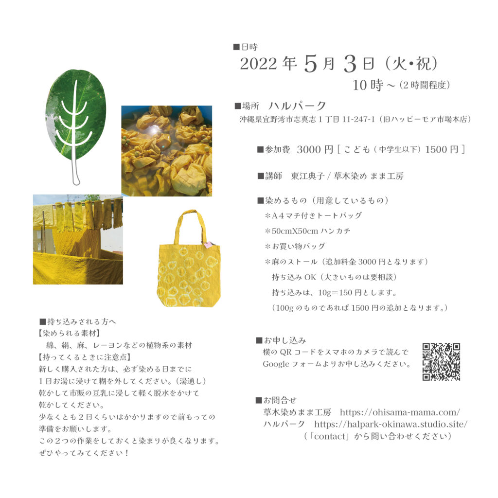 【新しい場所→「ハルパーク」での草木染めワークショップのご案内!】